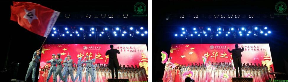 与法学院、生命学院优中选优组建了120人的参赛队伍,共同完成了校歌《为世界之光》和自编曲目《十送红军+四渡赤水出奇兵+山丹丹开花红艳艳》。