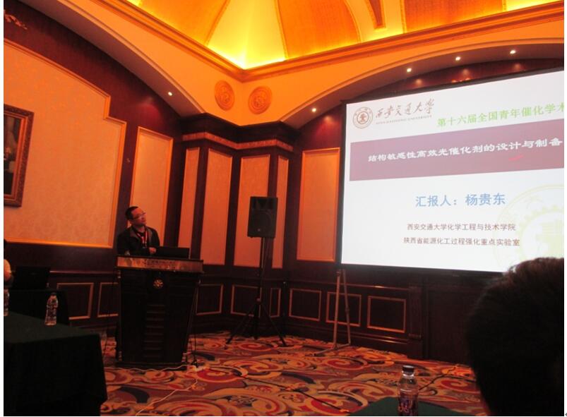 杨贵东副教授主持了分会场会议,并代表工业催化研究所做了题名为“结构敏感性高效光催化剂的设计与制备”的报告。在报告中,杨贵东老师结合当前人们所面临的能源短缺与环境污染的问题,阐述了光催化技术在光解水制氢和环境治理等领域起到的关键作用。介绍了课题组近年在控制纳米光催化材料的微观结构,研究物料的传递、反应与材料生长之间的内在联系,发展光催化材料合成和结构控制新方法等方面的研究工作。报告得到了在场同行专家的高度认可和一致好评。此次参会加强了91探花