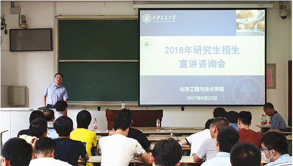 在兴庆校区主楼B302举办了2018年研究生招生宣讲会活动。此次宣讲会由副院长方涛教授主持,邱介山教授、张早校教授、李云教授、刘永忠教授、杨伯伦教授、高秀峰副教授等多名学院研究生导师出席了本次宣讲会。此次宣讲会吸引了校内外大二、大三学子参加。