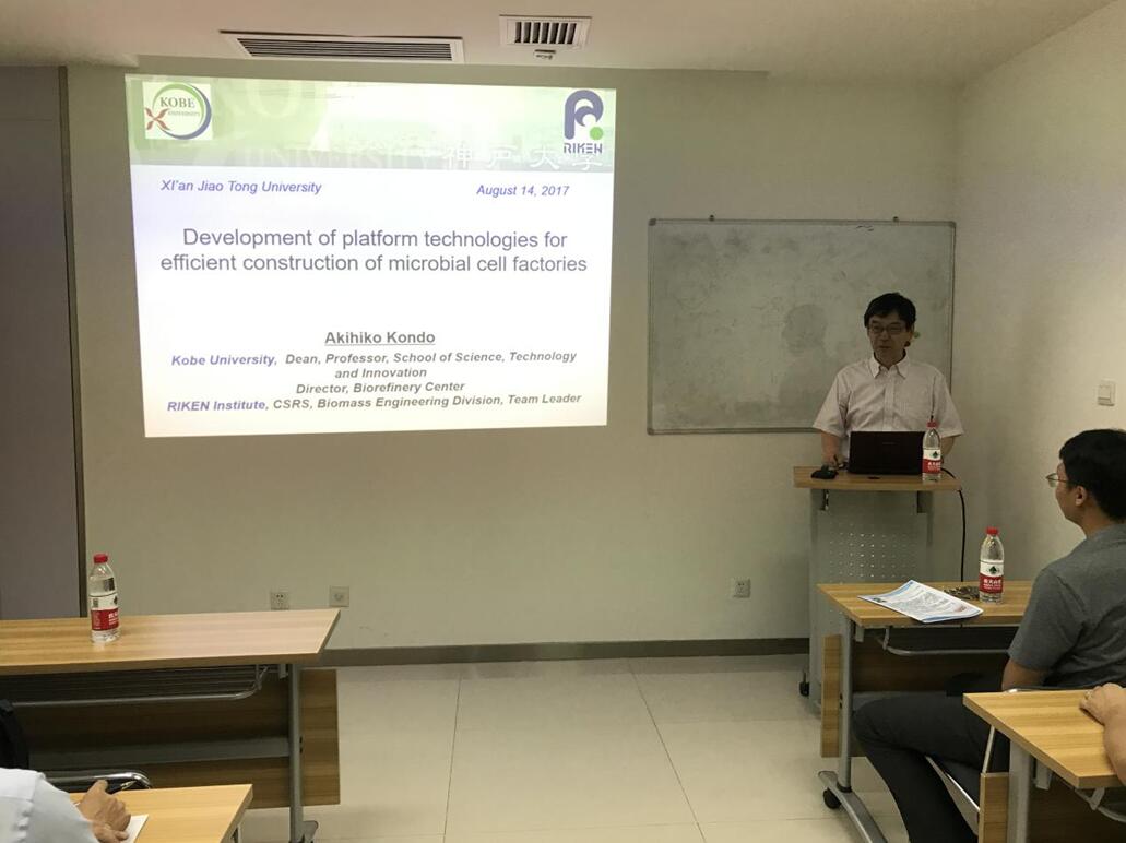 进行学术交流。访问期间,Akihiko Kondo教授做了题为“Development of platform technologies for efficient construction of microbial cell factories”的学术报告。Akihiko Kondo教授的报告主要讲述了平台技术的发展及其在微生物细胞工厂构建过程中的应用,并设计了具有特定功能的细胞直接用于生物燃料和化学品的生产。具体报告内容如下:细胞表面展示技术,包括:细胞粘附、生物转化、分子识别、信号传导等,Akihiko Kondo教授成功的在酵母乳酸菌、棒形菌设计了一系列细胞表面展示系统;合成生物工程平台的构建(GDCP),包括:合成途径、基因组设计、基因表达调控、基因簇设计、长链DNA合成。此外,Akihiko Kondo教授主导的生物炼制,细胞工厂,新药及药物载体设计等相关课题研究在生物化工和能源化工方面都具有重要的应用价值。Akihiko Kondo教授的讲座使学生开阔了视野、增长知识,还能积极促进91探花