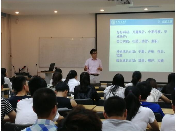 首先,党总支副书记沈人杰做了新生入学教育专题讲座,他从学院和学校的招生规模、西部科技创新港的建设、学院近几年的就业情况以及化工学科的全国排名等方面向新生展示了学校、学院和本专业的相关情况,接着以“人生需要不断地奔跑”为导语,要求学生树立进取意识,不断进步。学院也会通过研究生的科研成长训练营和就业成长训练营等计划为大家的成长提供帮助,同时希望大家以主人翁的精神,积极投身91探花