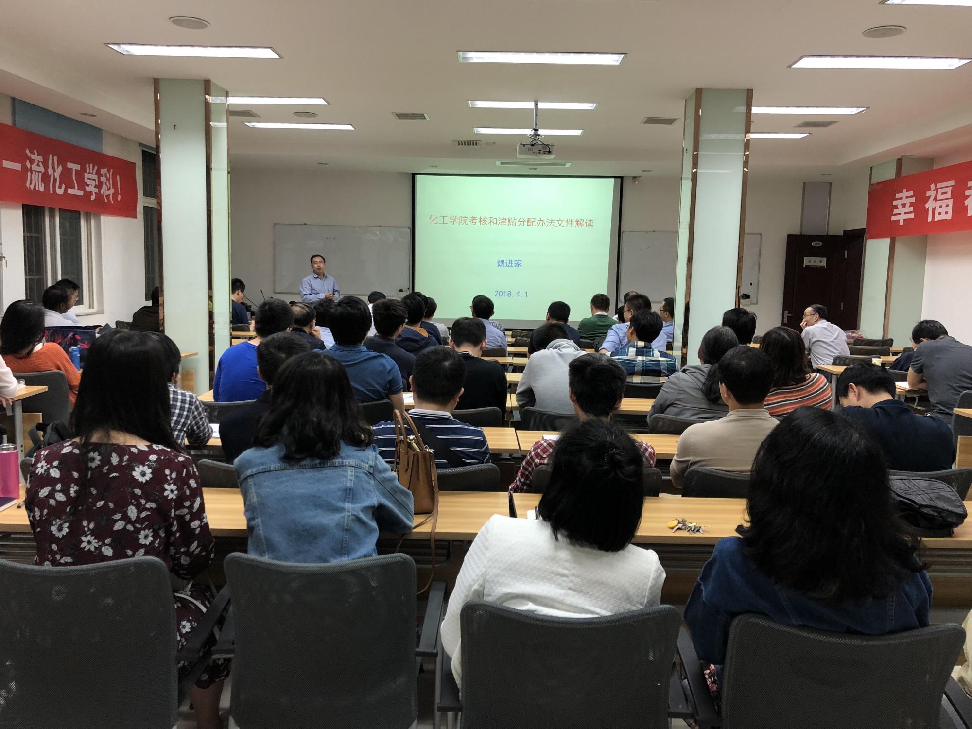 全院教职工齐聚化工办公楼106会议室,召开全院大会,传达91探花