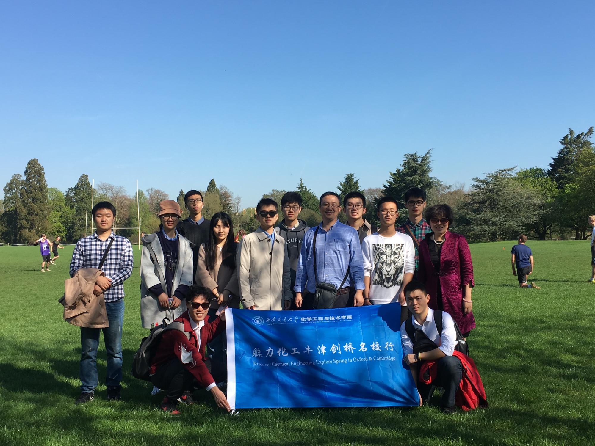 牛津-剑桥游学小组在李云老师和杨贵东老师的带领下来到了牛津大学园区公园。在这里,绿草如茵、樱花绽放,牛津的学子们进行着丰富愉快的课后活动,四处洋溢着活跃灵动的名校氛围。大家徜徉在这充满文化气息的校园里,感受到了名校的自由、积极、向上的精神,身心受到了洗礼。