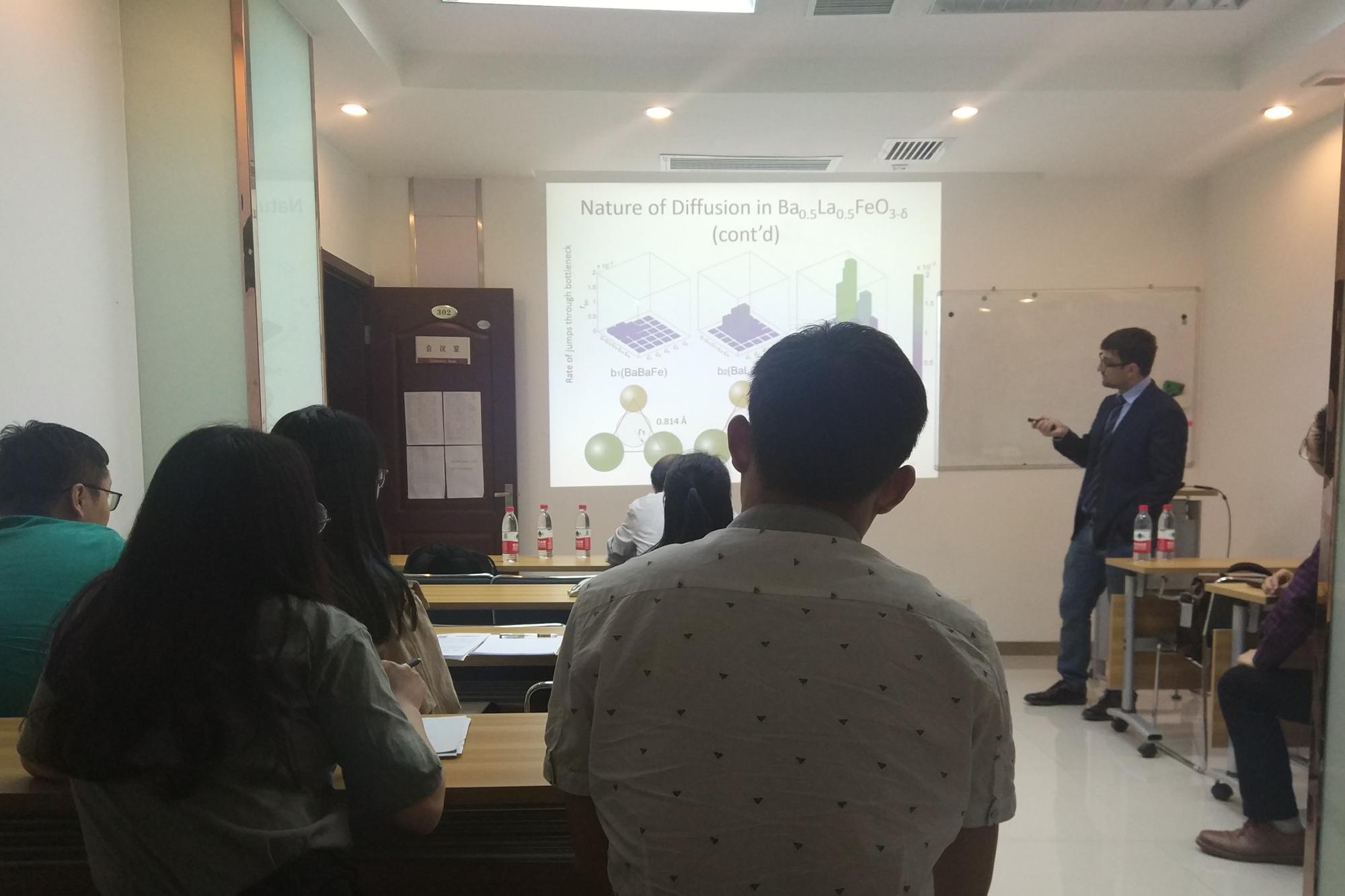 师生带来的报告题目为“Perovskites and Antiperovskites for Fuel Cells, Oxygen and Hydrogen Evolution, Oxygen Reduction, and Lithium Conductors”和“Statistical Modelling and Analysis of Data Obtained from Electrochemical Experiments”。
