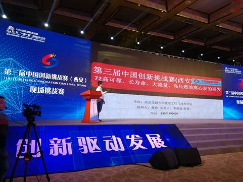 邓建强教授团队针对制约高性能离心泵研发的关键技术和难点,结合流体压力能回收技术,提出运用燃油离心泵出口流量的余压对入口流体进行增压和流量交换的技术措施,能够在快速变工况下,较好地实现流量和压力的匹配平衡,其技术创新性得到了现场评委的一致肯定。经过现场挑战赛激烈角逐,项目最终获得第三届中国创新挑战赛(西安)优秀奖和奖金鼓励。