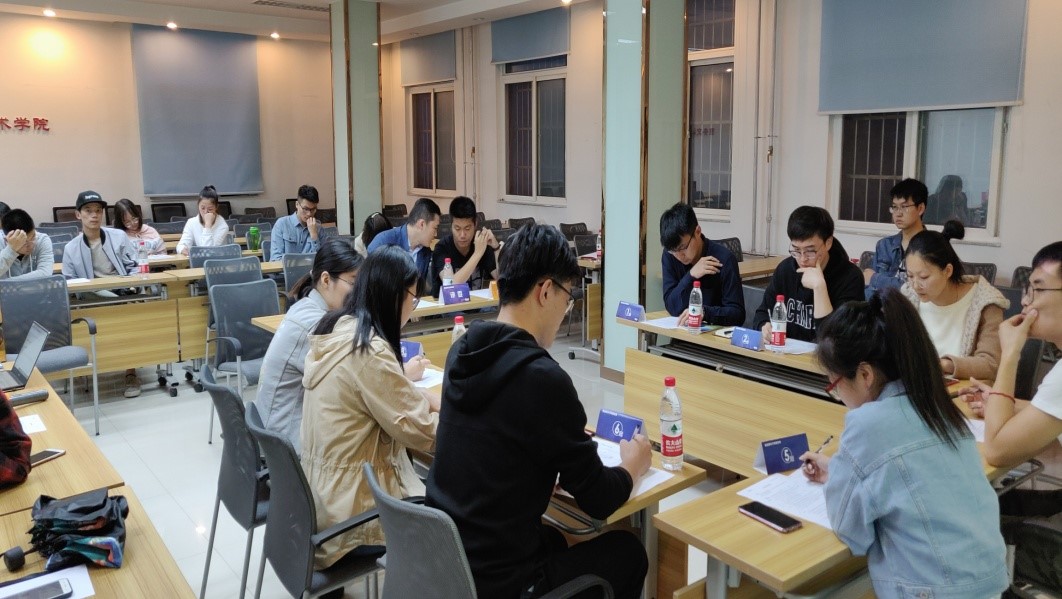 首先,李老师给同学们讲述了无领导小组面试的相关概念、规则及要求,接着为了加深同学们对无领导小组面试的印象,李老师随机抽取了几名同学作为模拟面试者参与了体验和互动。在李老师的指导下,参与模拟面试者依据编号入座。在详细讲述完面试规则后,李老师公布了面试讨论题目。参试者和在场的同学都进行了思考。