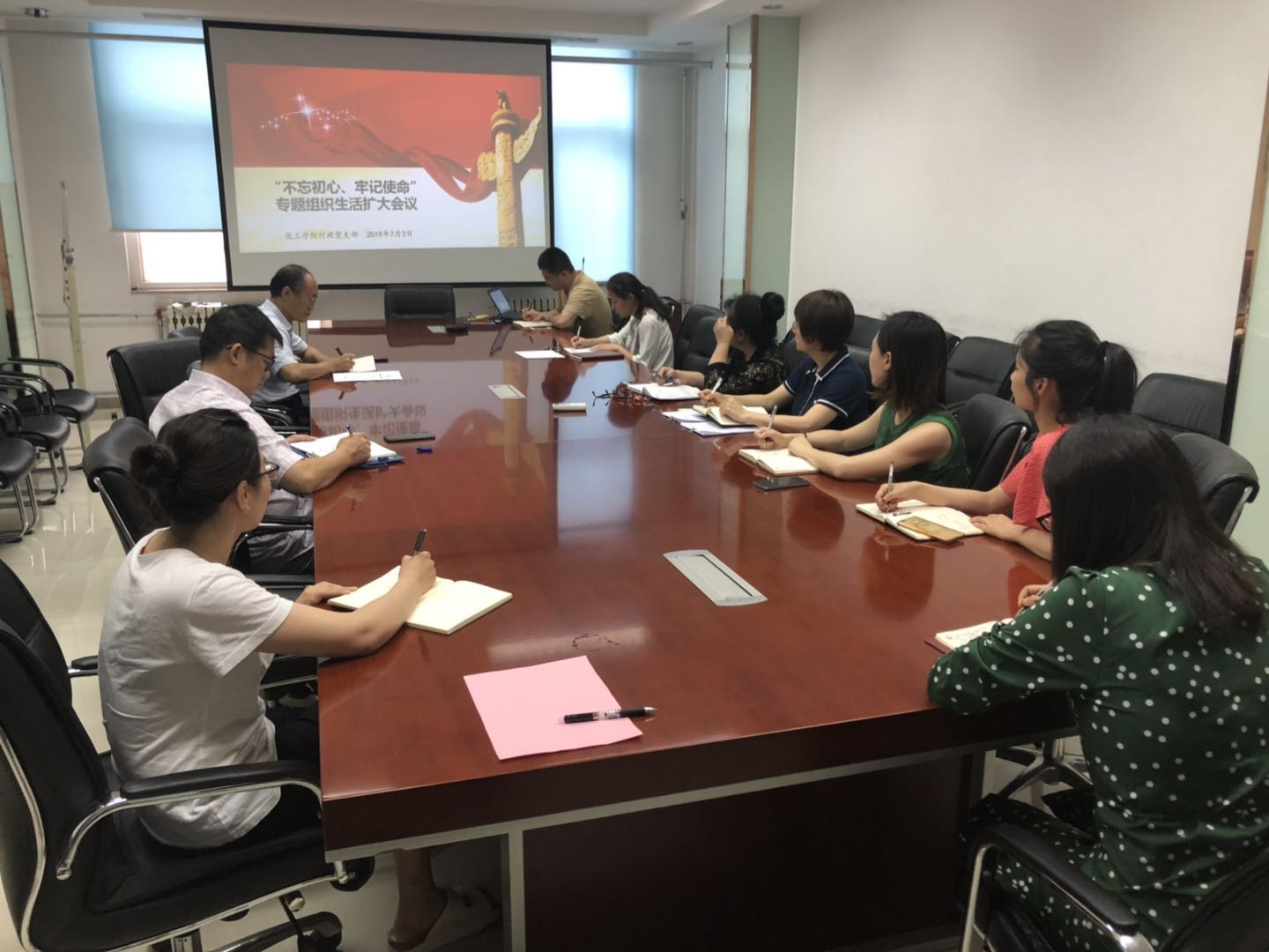 行政党支部召开“不忘初心、牢记使命”专题组织生活扩大会议,分党委书记张早校、副书记沈人杰出席会议,办公室全体成员参加会议。
