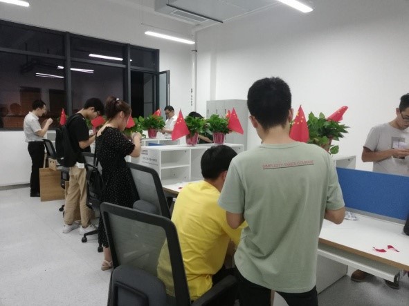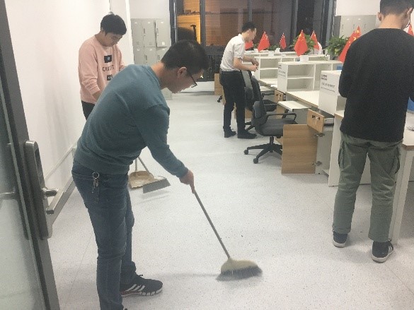 会议结束后,各个支部组织全体党员立即开展了志愿服务活动,打扫了化工研究院的全部研究生工位,让同学们更好、更快地融入创新港生活,更好地开展学习科研工作。志愿活动过程中,党员们为每一个工位贴好座位标签,清洁好区域卫生。同时,为了庆祝新中国成立70周年,为每个工位布置了国旗,进一步提升同学们的爱国主义情怀。