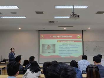 分党委委员魏进家院长为化工系教工支部及工业催化所师生联合党支部进行了题为《发挥模范带头作用,力推化工一流建设的》党课教育,并随后与在座老师同学就化工学科建设进行交流。主题教育活动由姜召与吴志强主持。
