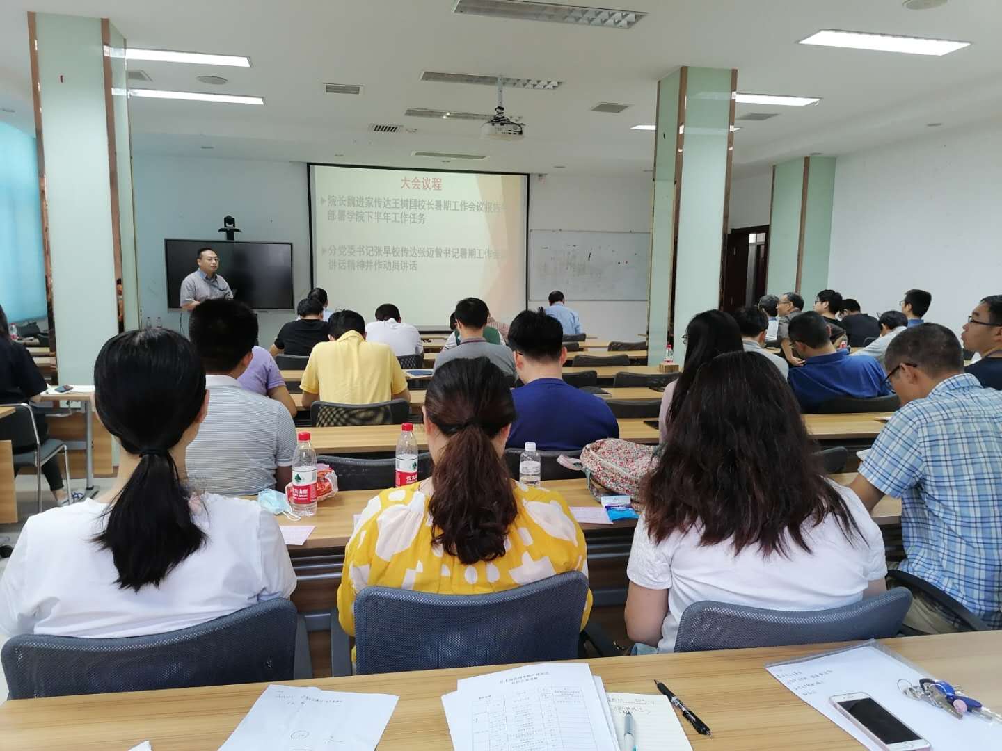 在院办106会议室召开了全院教职工大会,认真传达学校暑期工作会议精神。学院党政联席会成员,全体教职工参会,会议由副院长方涛主持。