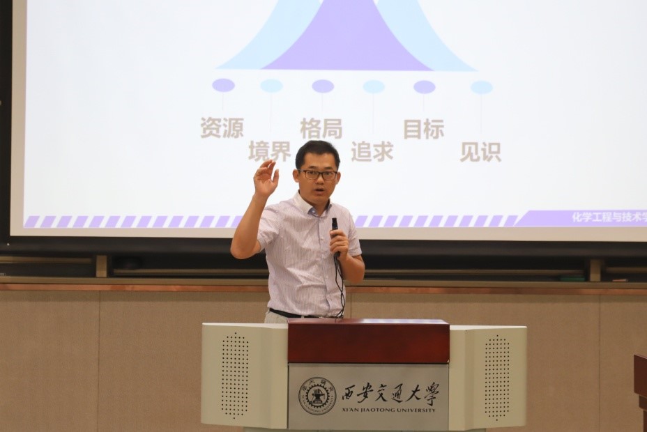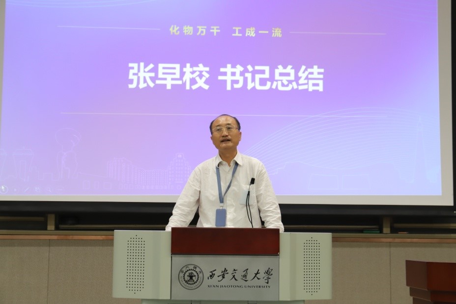 最后,分党委书记张早校书记进行总结发言,张书记以中美贸易战为引子,号召全体新生要知难而上,努力攻克卡脖子的难题,为化工事业贡献自己的力量。并重点阐述了西迁精神,勉励大家要牢记使命和担当,脚踏实地,认真科研,为创新港的建设贡献自己的力量,同时要利用好创新港的平台和资源,努力追逐梦想,乘风破浪,为世界之光。