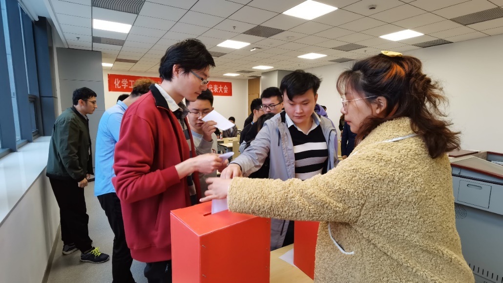 团工委副书记李永鼎老师、校研究生会主席团成员石卫江同学、电气学院研究生会主席申超领同学。本次大会由化工研会主席团成员董倩主持,共有29位院研究生代表参会,成功选举15位院级研究生常任代表与9位校级研究生代表。