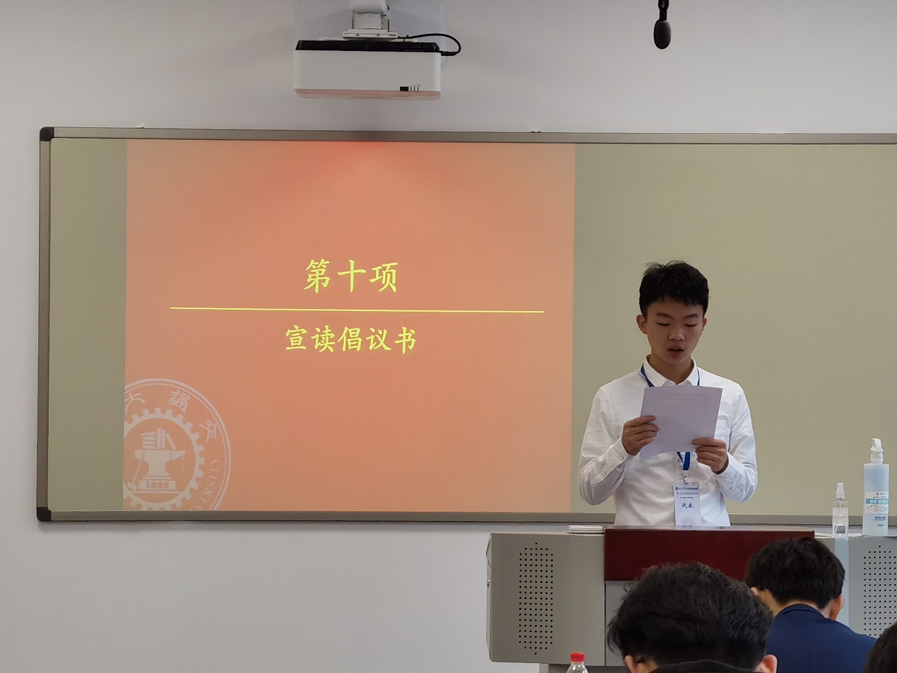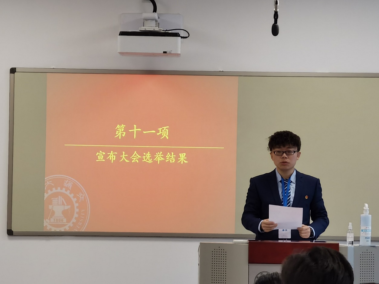 大会临近尾声,化工研会主席陶路舒发表闭幕感言,对到场代表与嘉宾表示了真挚的感谢,对当选院级常任代表与校级代表的同学表示了衷心的祝贺。对代表们提出了一同为学生发声,为学院谋福的倡议。