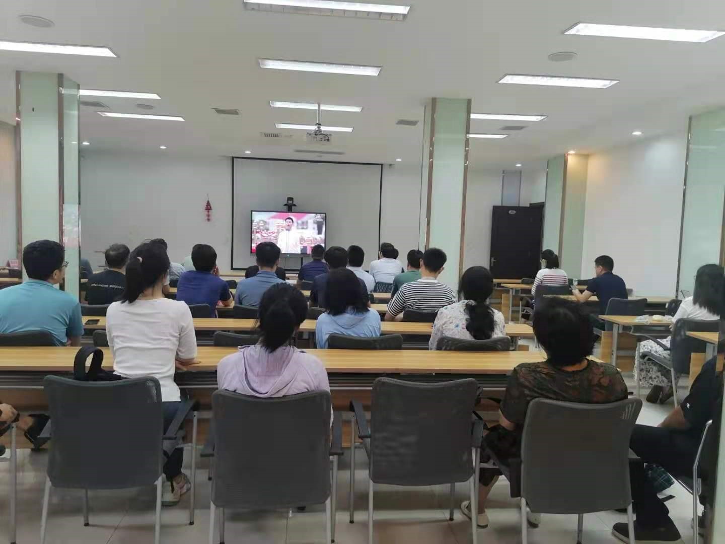7月1日上午,学院组织全体党员和师生分别在创新港5-1E105、教学二区106会议室集体观看庆祝中国共产党成立100周年大会,认真聆听习近平总书记在庆祝大会上发表的重要讲话。作为党史学习教育的一项重要活动,全体党员和师生积极参加,师生反响热烈。