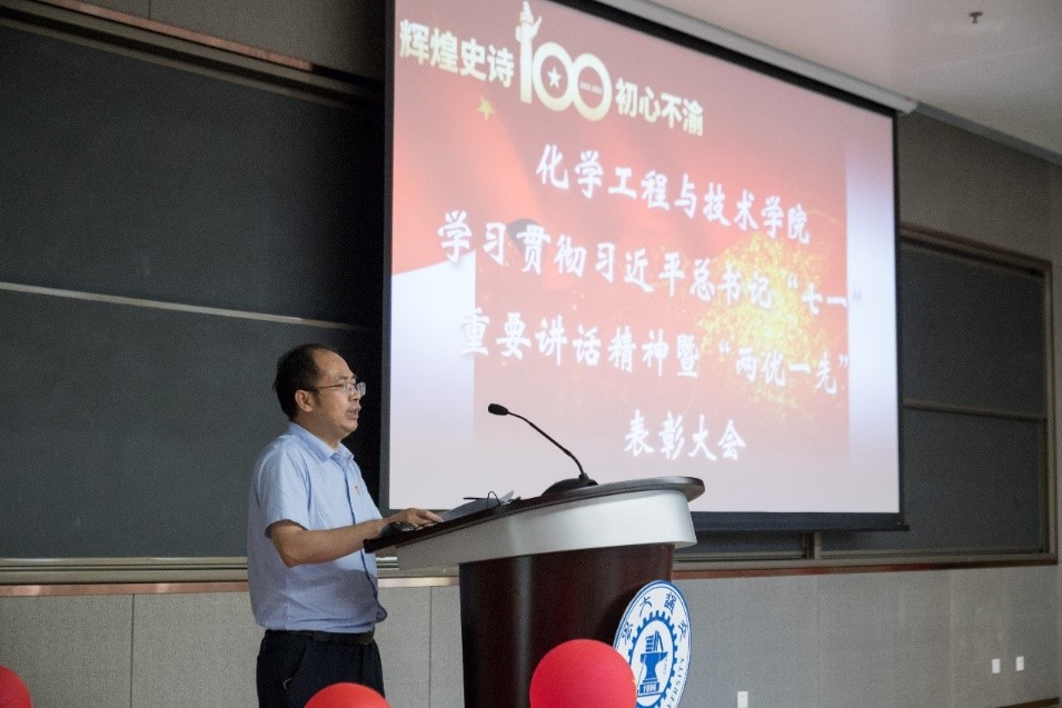 张早校书记从“七七事变”84周年为切入点,从坚定理想信念,时刻不忘知党史、补足精神之钙,坚定不移跟党走、践行初心使命,矢志不渝跟党走三个方面入手,带领全体师生共同回顾中国共产党的百年征程史,并带领全体师生党员重温习近平总书记在庆祝中国共产党成立100周年大会上的重要讲话,结合学院发展历史,要求全体师生以习近平总书记“七一”重要讲话精神为指导,努力推动一流化工学科高质量发展。
