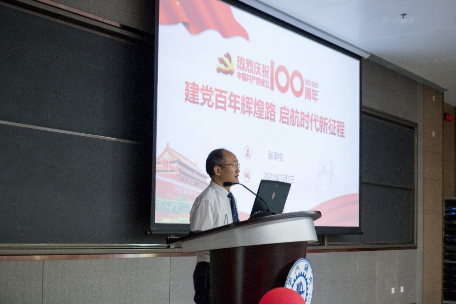 大会最后一项,分党委书记张早校为全体师生上党课,党课题目为“建党百年辉煌路,启航时代新征程”。