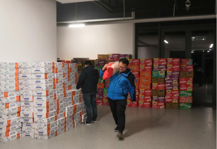 一方有难八方支援,疫情期间,学院收到了众多校友和企业的大批物资捐助,这些物资纷纷运达创新港,留守教师周德重、滑纬博及杨卷等人主动请缨,协助学校、学院搬运物资,并协助分发给学生。有时候从早上忙到晚上,甚至都没有休息的时间,他们的辛勤付出,为学院全体研究生送去了温暖。