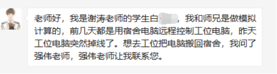 疫情的来势汹汹,也使部分学生没有及时将笔记本电脑、复习笔记等重要物品带回宿舍,导致隔离期间无法正常工作,严重影响了学生科研进度,同学们焦头烂额。留守的老师们了解情况后,充分发挥了桥梁作用,及时将电脑等物品从19号楼取出来,严格按照防疫要求转交到学生手里,另外部分学生因远程办公,还需要恢复办公室网络等,驻扎创新港的研究生有近500多人,老师们事无巨细,本着对每个学生高度负责的态度,尽可能降低疫情对学生科研工作的影响。