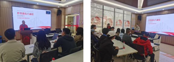 一行的到访表示热烈欢迎,他系统介绍了东方雨虹的发展历程、咸阳工厂的战略定位及绿色制造理念。谢海涛介绍了东方雨虹的发展前景和西北地区业务的开展情况。王昭然聚焦人才发展体系,解读了企业校招政策与职业成长路径,期待与高校共建实习就业基地,为学子提供从理论到实践的全链条支持。咸阳工厂技术部经理吴磊结合个人发展经历分享了对于就业的认识,并针对东方雨虹在科技创新方面做出的突破进行介绍。他鼓励同学们将前瞻性研究与企业应用场景结合,实现合作共赢。