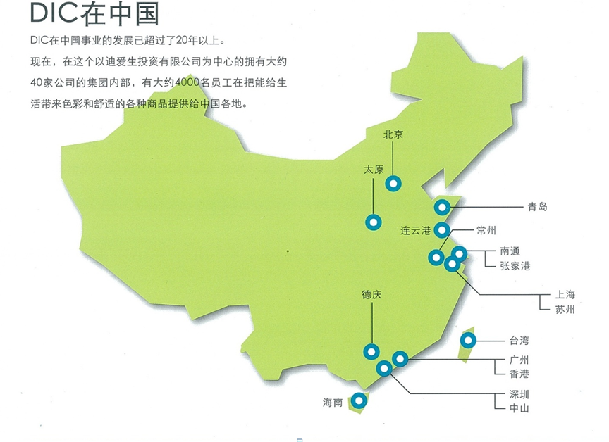 对于DIC来说,中国因其市场规模、今后的发展性等因素而被置于重要的市场位置。现在在中国国内已有超过40家的集团企业在开展事业。