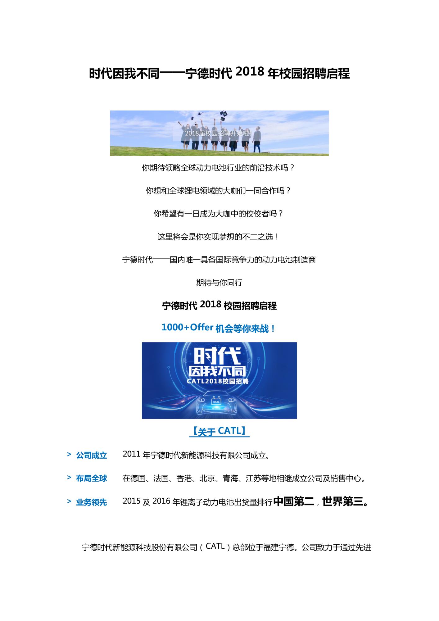 时代因我不同——宁德时代2018年校园招聘启程