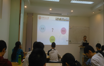 第一个游戏结束后,通过依次抽签的方式选择同学分别就“生活、科研、情感”三个方面来说自己的遇到的困难或者分享自己的快乐,并请同学们共同出谋划策帮助有困难的同学解决各方面的困扰;之后进行了第二个游戏“语句接龙”的记忆力游戏来放松同学们的心情,并请输掉游戏的同学谈论自己的感情观、择偶观或感情中遇到的困难。