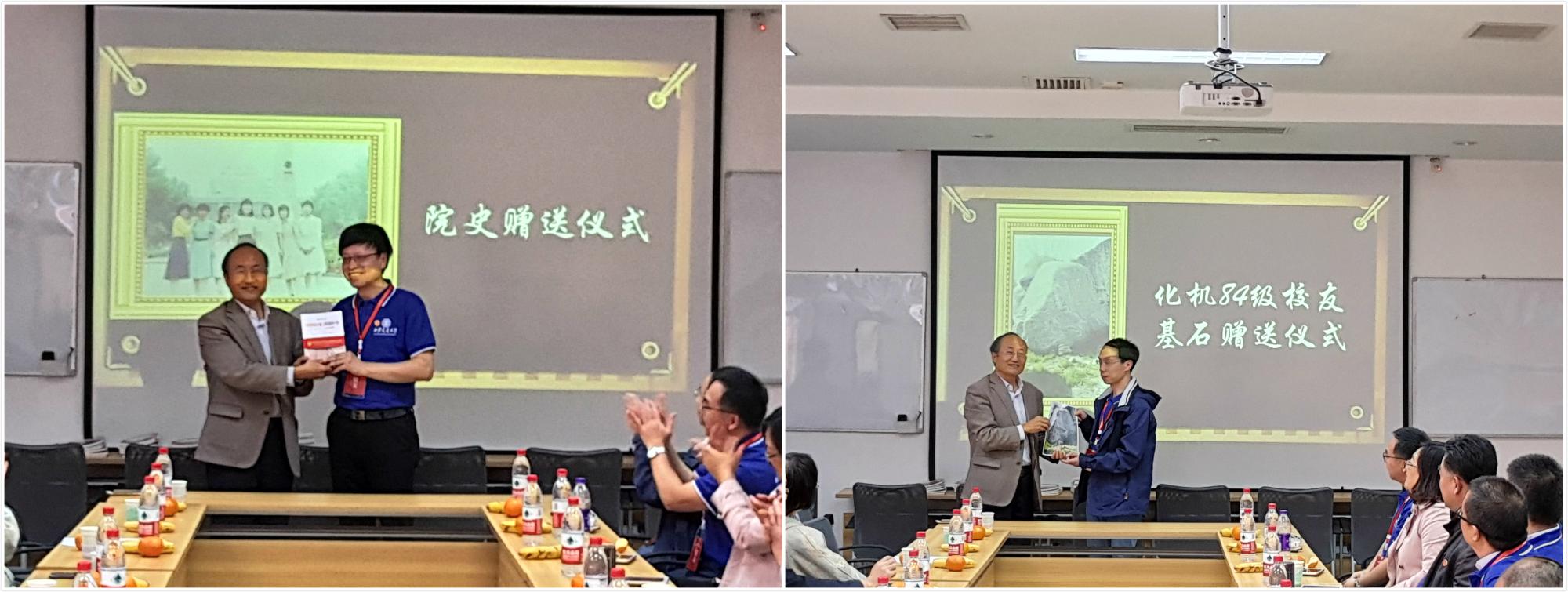校友对母校的情怀,更好比绿叶对树根的眷恋。学院为每位返校校友赠送了新出版的院史,校友们是母校的子女,母校是校友们坚强的后盾。校友也为学院赠送了基石。
