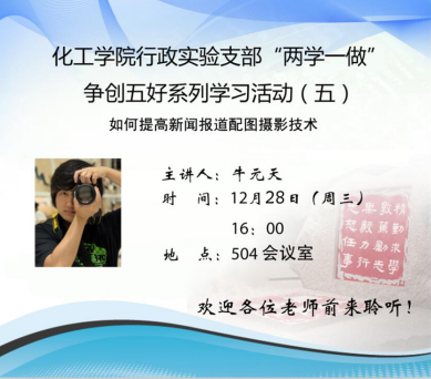 办公楼504会议室举行,本次培训主题为:加强新闻写作摄影技巧,会议由行政与实验党支部书记张敏老师主持,本支部牛元天老师主讲,支部全体同志和办公室工作人员参加了本次培训。