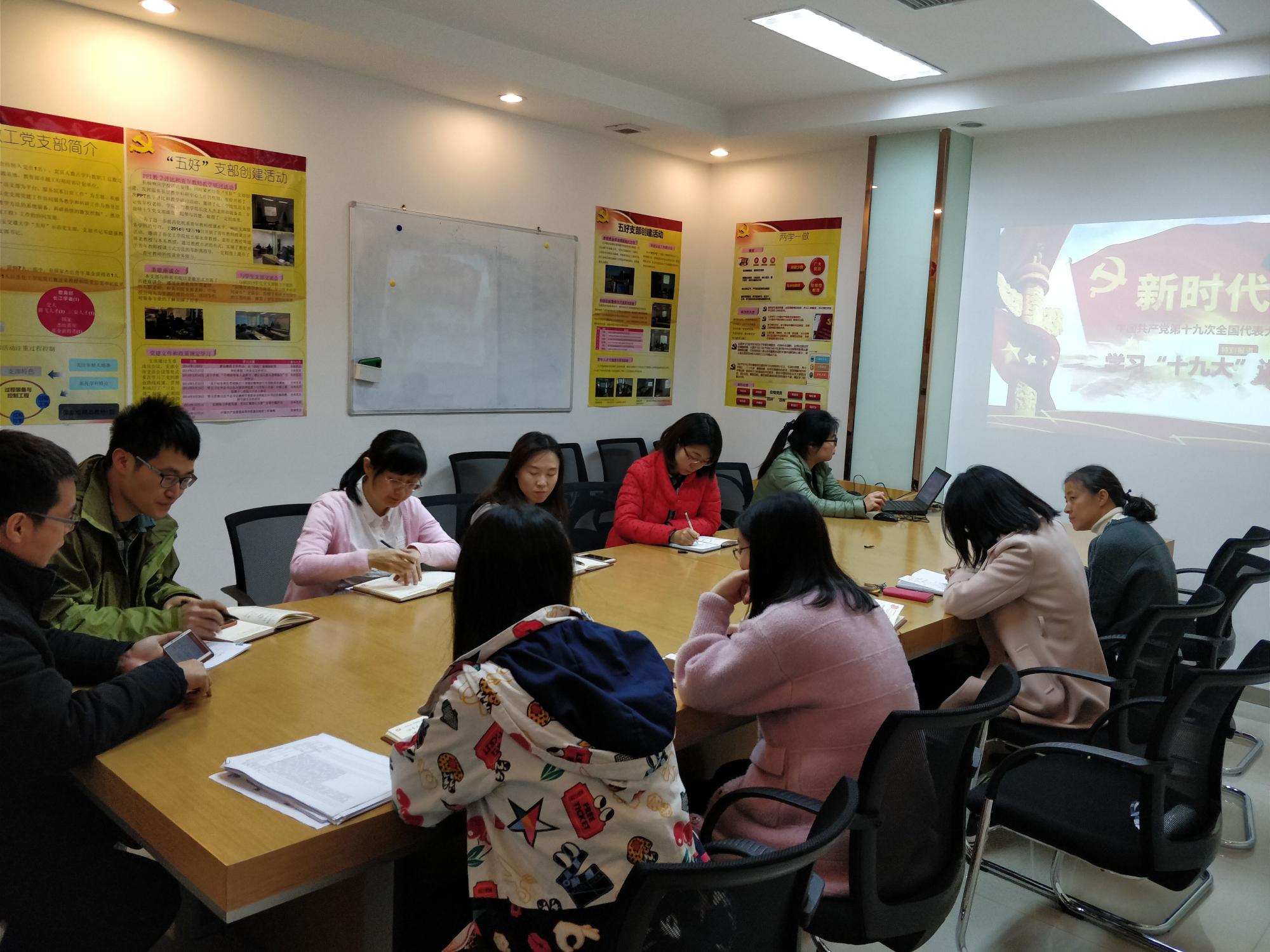 实验党小组组长侯雄坡首先发言。他回顾了本小组学习习总书记讲话精神的概况,随后通过对一组数据的分析与比对,使在座同志深刻感受到工业4.0时代的真正到来以及当前科学技术日新月异的发展趋势,他结合工作实际的讲解使同志们听后倍感振奋。行政党小组组长周婷分享了上周小组学习情况。通过对我党党史与本次“十九大”精神的细腻梳理,同志们对于习总书记讲话精神的把握更为清晰。此外,行政党小组在努力学习讲话原文同时还要求小组成员对标文件寻找自身不足与差距,提出整改思路。