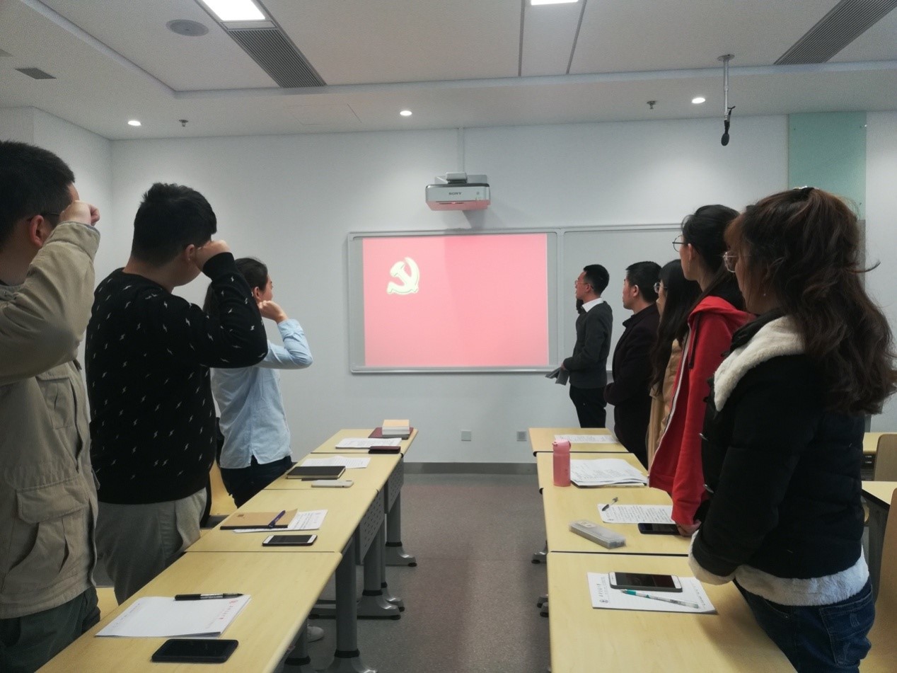 会议在重温入党誓词的环节中展开,全体党员在支部书记胡文亨的领誓下,面对党旗重温了自己对党忠诚的铮铮誓言,表达了“不忘初心、牢记使命”的信念和决心。
