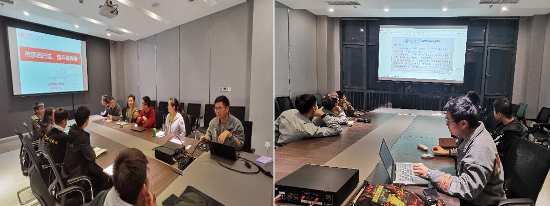第一部分为“西迁精神”学习活动,活动前同学们分别收集了西迁路上的相关史实与材料,并和大家分享。本科在交大本校的同学分享了他在本科期间印象最深的西迁老教授的故事与西迁精神相关的故事,感受到交大老教授们在国家需要之时毅然西迁的胸怀。其中赵林坤同学和大家分享他本科期间拜访西迁老教授的情节,当问到问道“您当初知道要到大西北时心理是怎么想的?“老教授满怀激情的说:”到祖国需要的地方去建功立业,心里感到很光荣“。在场大家听后都非常感动。”胸怀大局,无私奉献;弘扬传统,艰苦创业“这正是”西迁精神“的内涵。最后大家互相分享了自己的学习感想,都表示这次活动非常成功,对西迁精神有了更加深刻的理解。