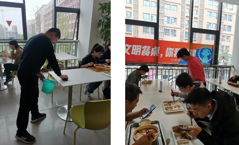 第三部分是志愿活动。作为交大的主人翁,校园美好的生活环境的创建需要我们每个人的努力,而餐厅食堂是每天人员流动最密集,最容易出现卫生疏漏的地方,为此,我组织同学们在餐厅协助餐厅工作人员开展志愿活动,清理餐桌,并向同学们宣传光盘行动,节约粮食,从我做起。活动之后,同学们都认为这次活动十分有意义,深刻了厉行节约反对浪费的理念,同时也为交大同学们的良好的素质感动。