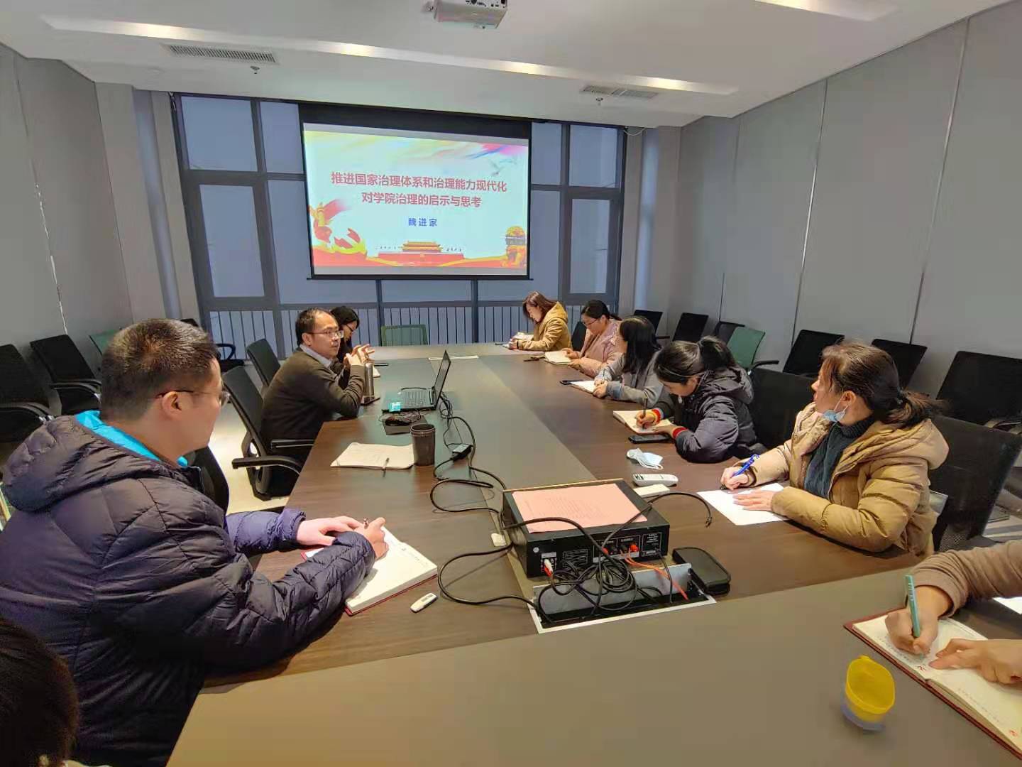 近几年来的高速发展历程,提出了学院及办公室推进治理体系和治理能力现代化进程中存在的问题并详细向大家讲解了自身的对该问题的深入思考及具体解决措施。他指出,学院事业的不断推进,必然会对行政工作提出更高要求。依法施治、多元主体共治在今后学院治理体系中将进一步凸显出重要性。办公室职员应不断更新观念,加强学习培训,主动谋划本职工作创新,真正提升核心竞争力。