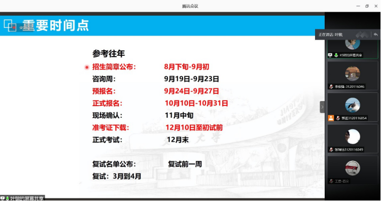 最后一位同学是叶锴同学,叶锴同学更是以笔试第一名的好成绩被交大录取。他给学弟学妹们分享了考研过程中自己的复习经验,侧重点和怎样学会合理安排自己的时间,以及一些中肯的建议,例如:凡事预则立不预则废;要坚定信念,抛去杂念,投入身心等等。考研想想都可怕的事情,但是在叶锴同学的分享下变成了一种锻炼,一种机遇,一种激发自己潜力的手段。学弟学妹都有股蠢蠢欲试的劲头,相信自己一定能够考上交大。