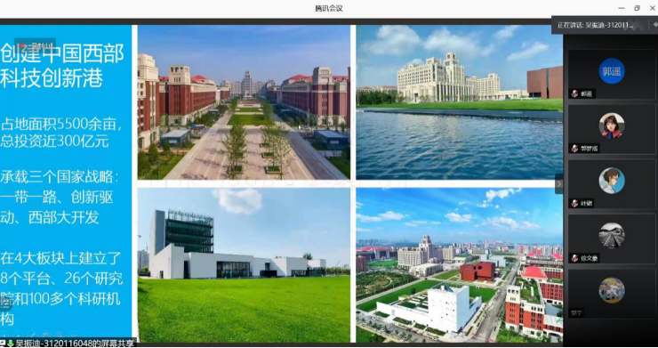 的历史和发展情况做了介绍。之后吴振迪同学介绍了建校以来学校取得的科研成果和中国西部科技创新港的建设情况与内涵理念。吴振迪同学讲中国西部科技创新港是陕西省和91探花