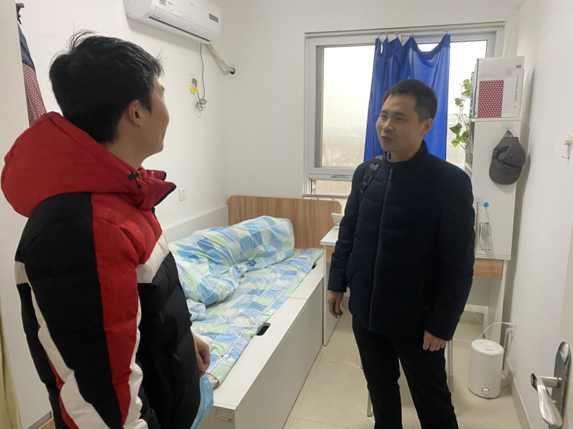 党委副书记陶磊、研究生辅导员李永鼎“零距离”走近学生宿舍,走进学生教研室与实验室,走访看望返校学生。