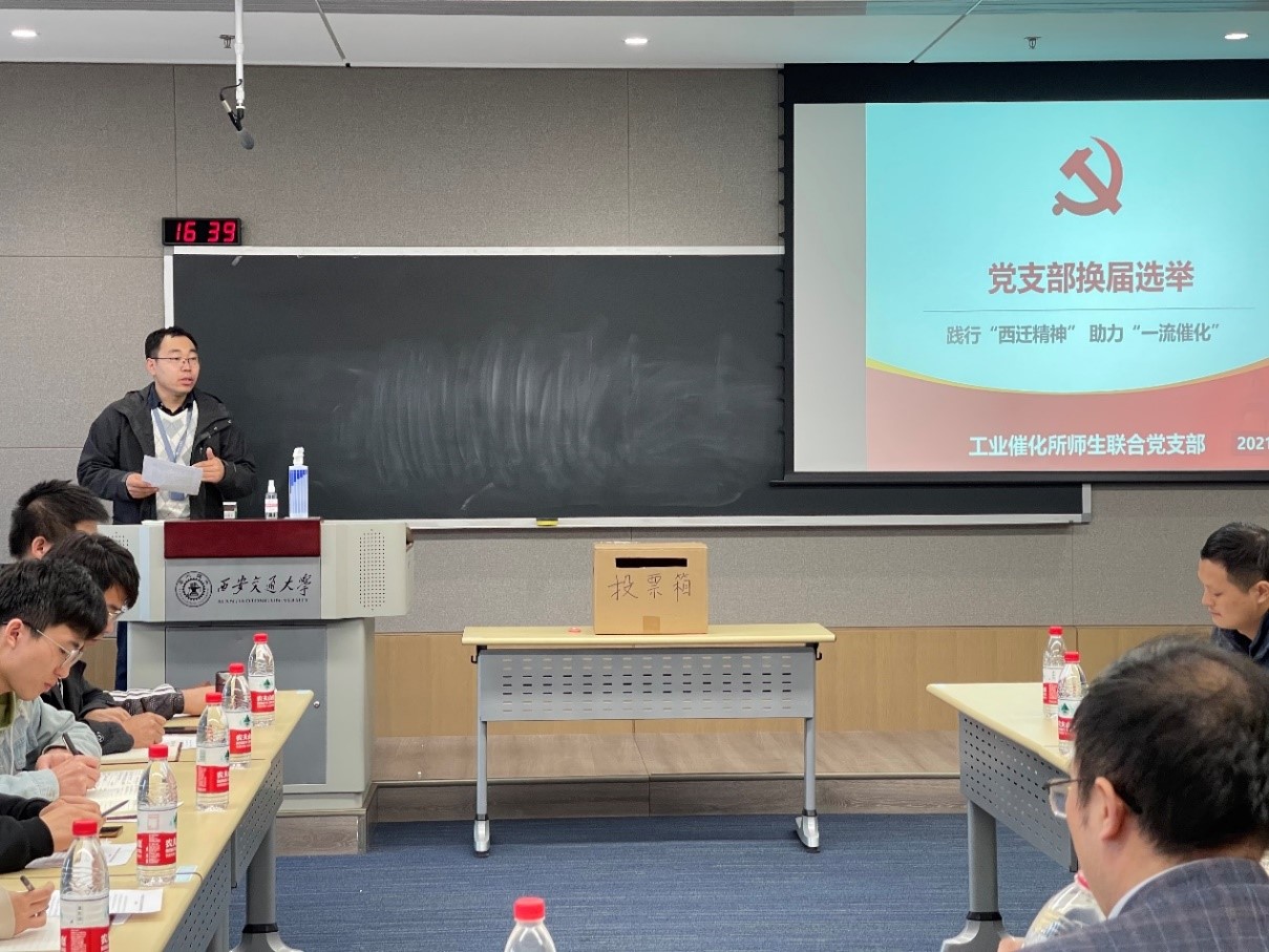 会议主要议程为支部换届选举、理论学习、公布2021年度拟发展党员名单及领导点评。大会首先确认本次参会有表决权的到会人数超过应到会有表决权人数的五分之四,会议有效。吴志强同志代表支部委员会向大会全体成员做工作报告,他介绍了师生联合支部的概况以及贯彻落实“七个有力”的情况。回顾了支部自2018年3月成立以来召开的历次主题党日活动及组织生活会情况,支部积极组织师生参与创新港搬迁和“科创月”活动,组织成员在疫情期间捐款助力武汉抗疫,邀请知名导师展开文献检索、数据分析和论文撰写等专题讲座,助力一流催化建设。在上级领导的关怀和支部成员的不懈努力下,支部在2019年被评为十佳党支部以及先进基层党组织。
