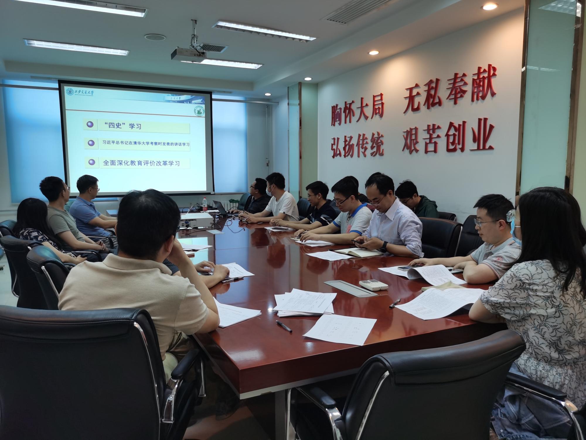 504会议室召开支部扩大会议,邀请学院党委委员伊春海教授进支部上党课,组织支部党员认真学习习近平总书记在清华大学考察时发表的重要讲话精神,传达我校贯彻落实《深化新时代教育评价改革总体方案》的工作方案。会议由支部书记吴震同志主持,支部全体名党员教师参加。