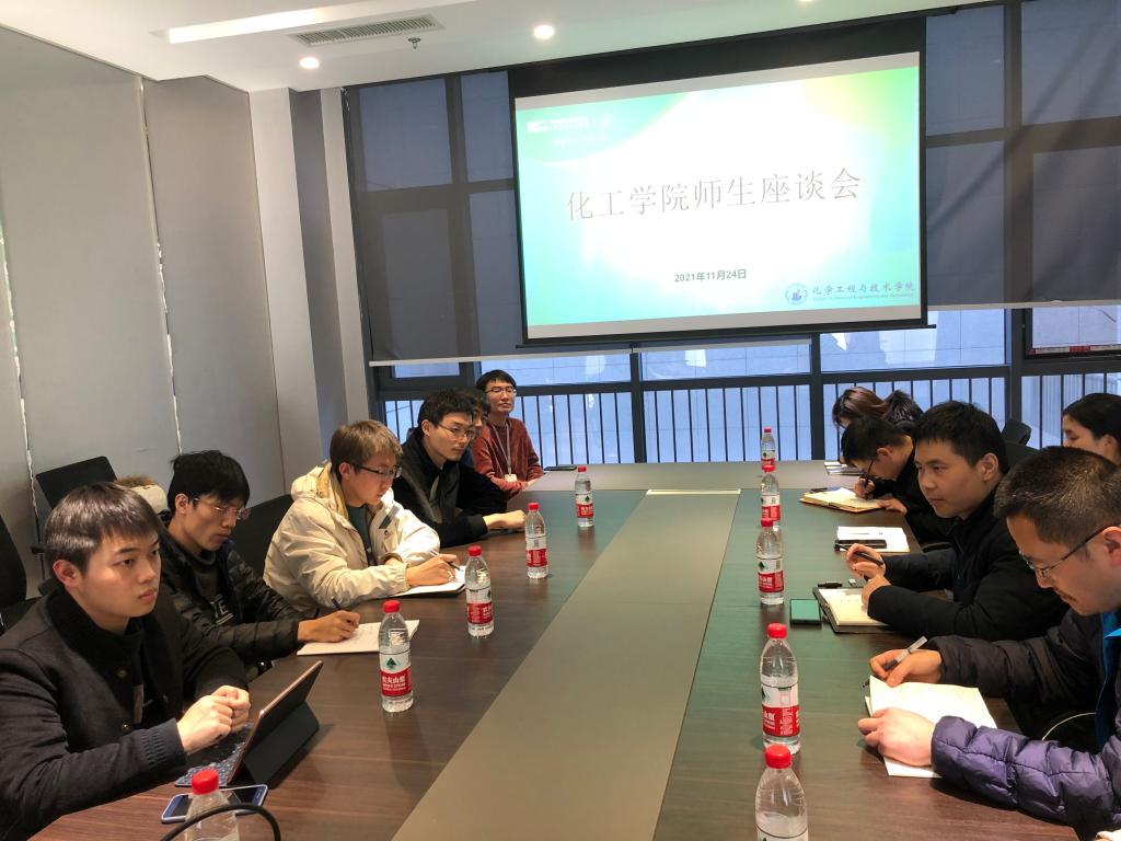 行政党支部与研究生代表在创新港19号楼2192会议室进行座谈交流。行政支部书记、院办主任蔡元汉主持座谈,学院分党委副书记陶磊出席座谈。