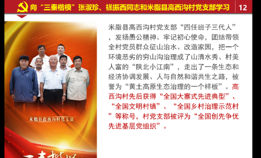 支部副书记余希阳同志带领与会人员共同学习了“三秦楷模”张淑珍、禚振西同志和米脂县高西沟村党支部等先进事迹。学习了“三秦楷模”对党忠诚、坚守信念的政治本色,心怀理想、胸怀家国的高尚情怀,解放思想、勇于探索的创新精神以及心系群众、淡泊名利的奉献精神。“三秦楷模”是陕西省重大先进典型的最高荣誉,获得者均在各行各业发挥了积极的示范引领作用。他们是楷模、是榜样,能给人以拼搏进取、勇毅前行的巨大精神力量!