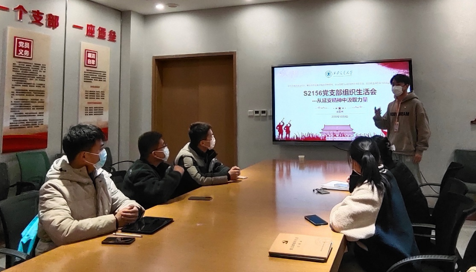 2022年12月9日,硕2156党支部开展了“从延安精神中汲取力量”专题组织生活会。此次会议在19-3183会议室举办,主讲人为徐圣洲同志,支部全体党员参会。