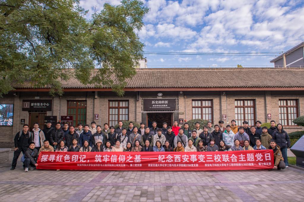 硕3158党支部成员和西安科技大学安全科学与工程学院博士研究生第一、第二党支部成员,与西安电子科技大学电子工程学院硕士2023级第一、第七党支部成员开展支部共建,共赴西安事变纪念馆开展“探寻红色印记,筑牢信仰之基”主题党日,激励党员铭记历史、不忘初心。