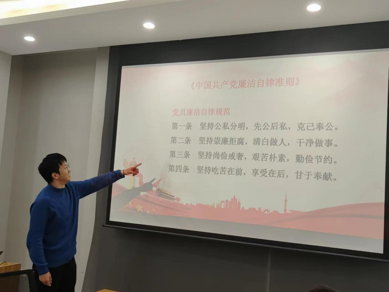 硕3158党支部组织开展了“风清气正 廉洁交大”主题党课。本次党课由支部宣传委员李栋宇主讲,全体支部党员及入党积极分子共30余人参与学习。