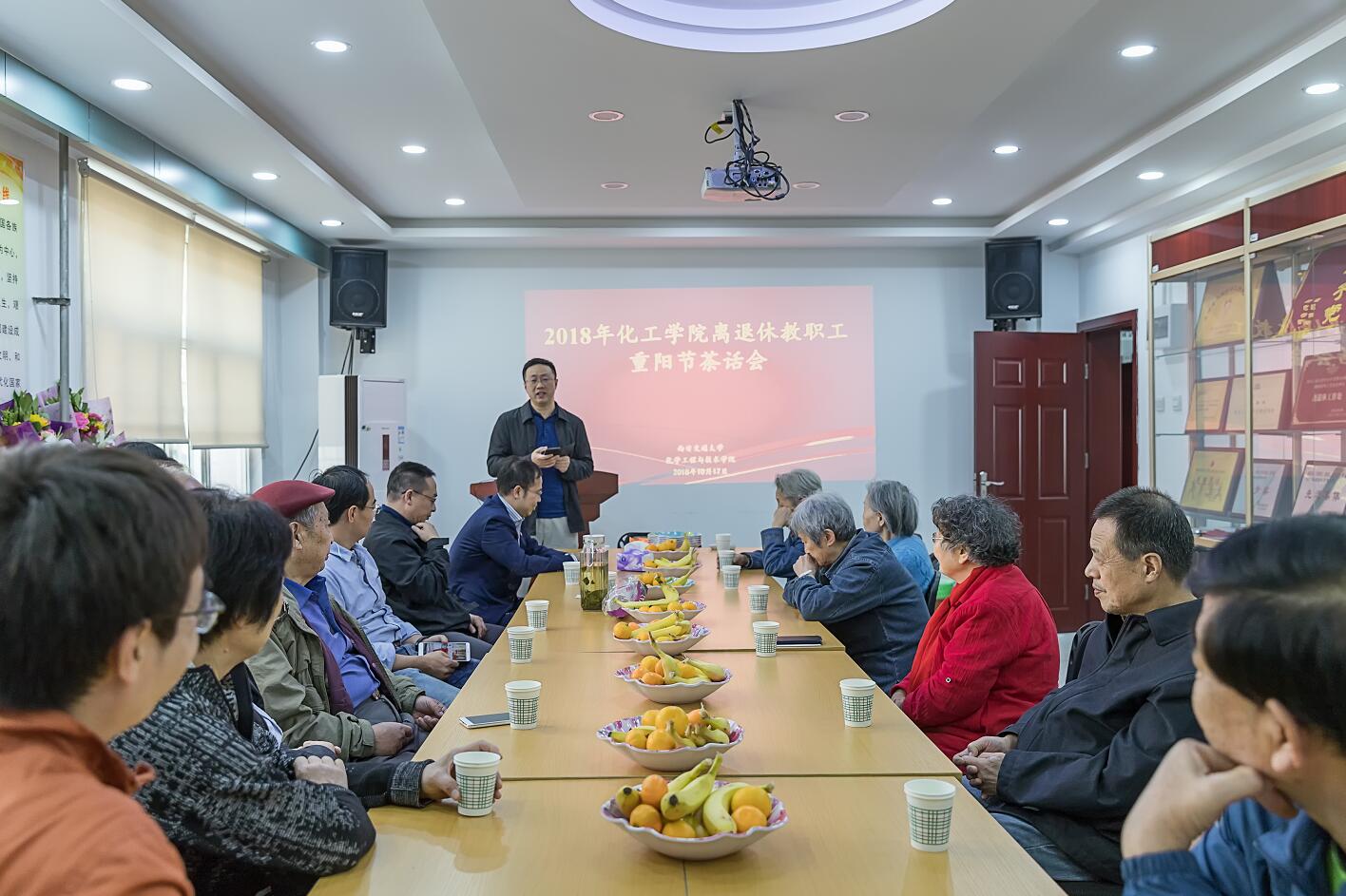 茶话会由工会主席邓建强教授主持,邓教授代表全院在职教职工向全体退休教职工表示节日的问候。“江涵秋影雁初飞,与客携壶上翠微”,他祝愿所有退休教职工在如此丹桂飘香、金秋送爽的时节,身体康泰、心态豁达,并转达了部分未能参会教师的祝福。