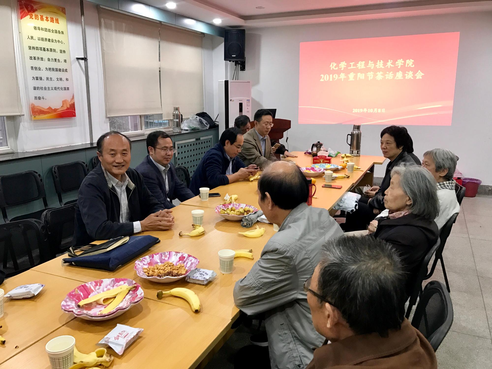 工会组织召开学院离退休教职工重阳节茶话会。化工、化机和高分子三个专业方向的退休教职工欢聚一堂,91探花