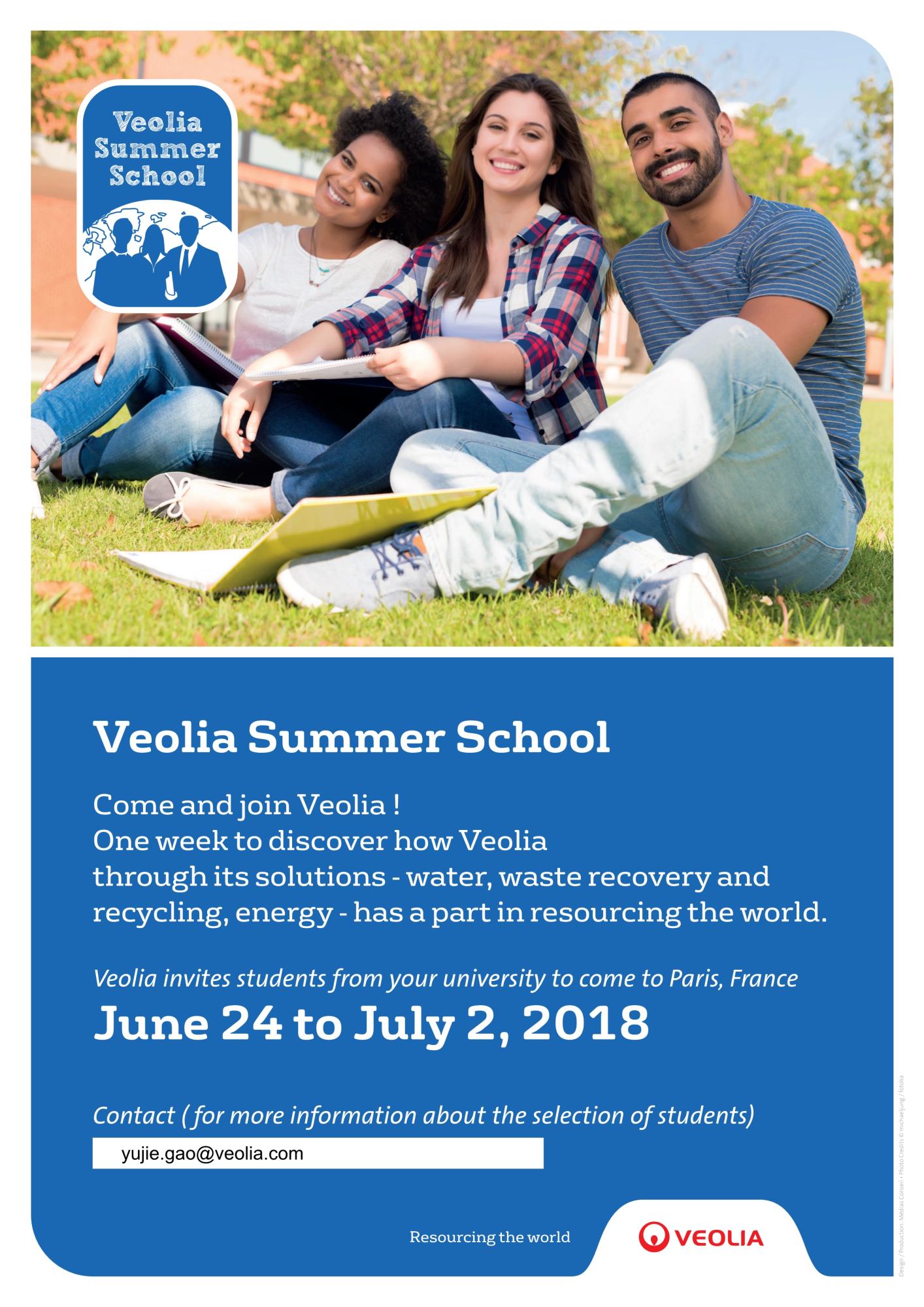 威立雅是一家专注于提供环境服务的世500强的法国公司,总部设在巴黎,每年会从全球名校选拔优秀学生参加在法国巴黎开展的为期一周左右的“暑期学校”活动。