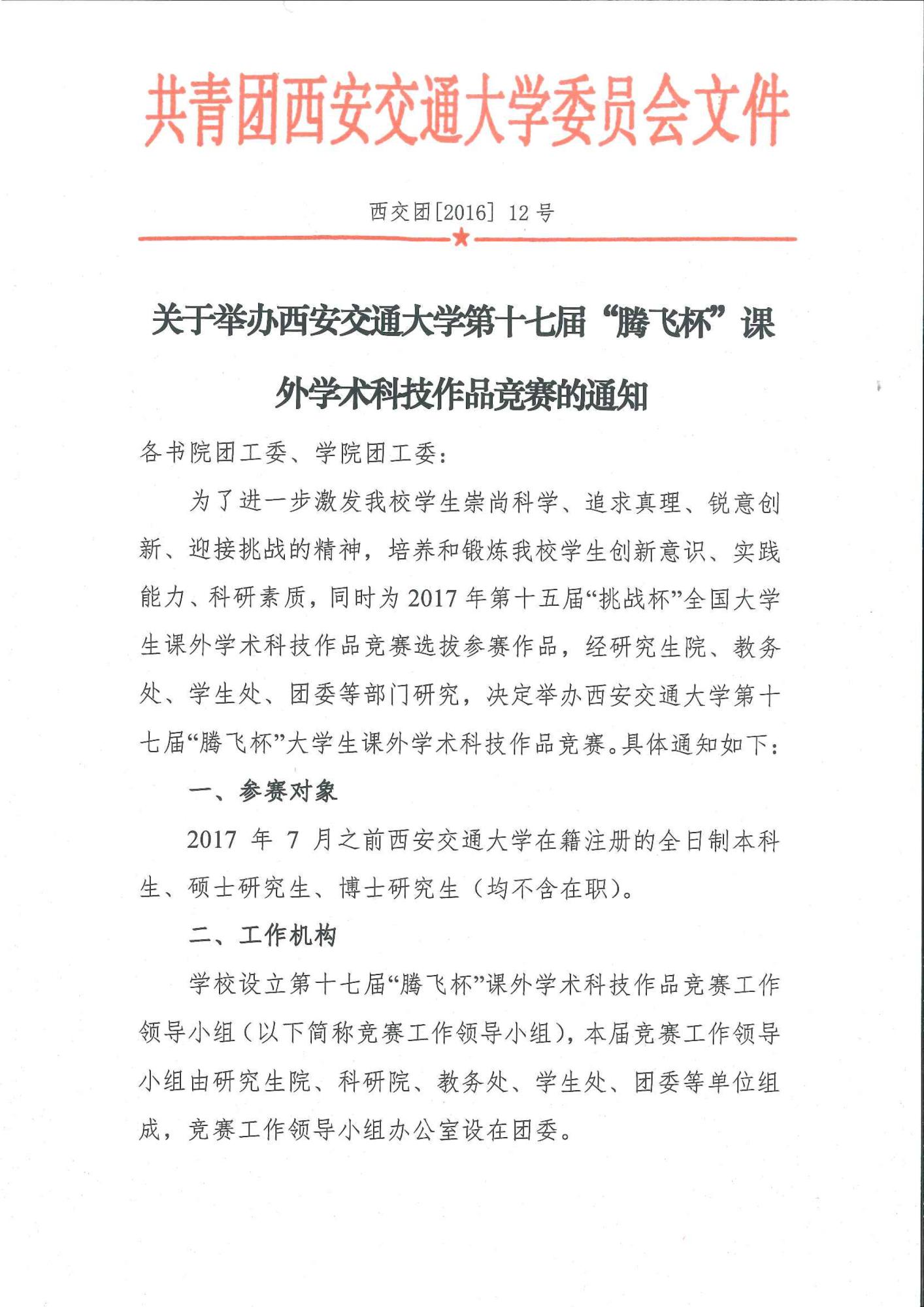 关于举办91探花 第十七届“腾飞杯”课外学术科技作品竞赛的通知