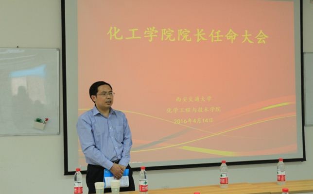 工作的肯定和鼓励,也非常感谢全体教职工对他工作的支持,并做了简短地就职表态:尽心尽职、勇于担当,牢记服务意识,在学院营造团结友好,奋发向上的氛围;加强自身学习,提高管理水平,树立创新型思维,做好学院的顶层设计;廉洁自律,清白做人,干净做事。